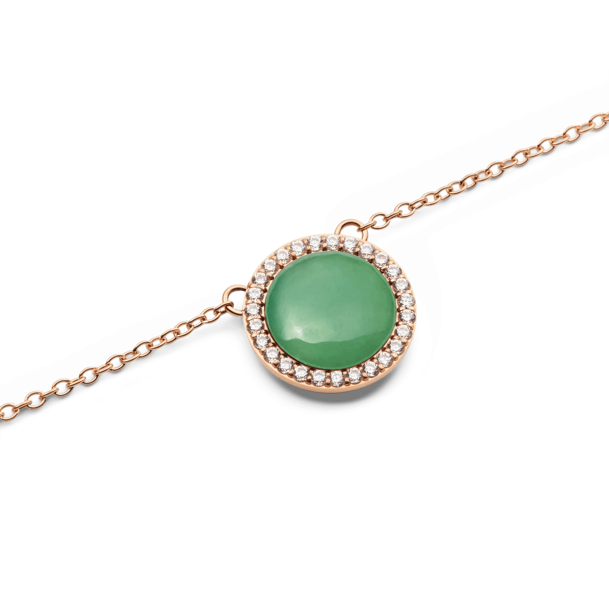 A thin row of white CZ crystals highlights the semi-precious stone in the Audrey necklace to make it stand out even further. The whole is translated into a domed shaped charm that elevates your look to timelessly elegant. The necklace is secured with a lobster clasp and allows for adjustable sizing. Semi-precious stones are a product of nature, and as such, variations in color, pattern, texture, and veining are inherent as each stone is unique.