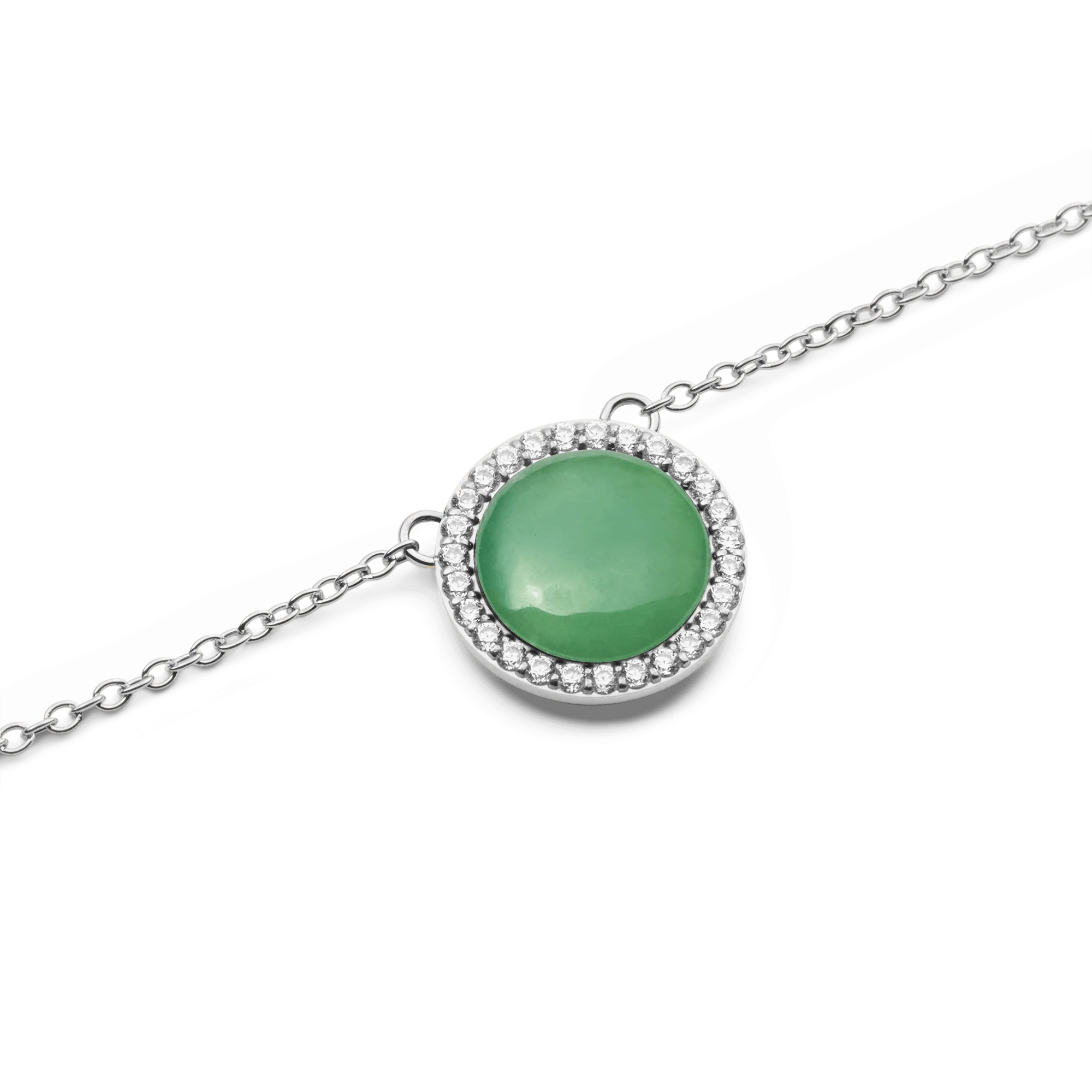 A thin row of white CZ crystals highlights the semi-precious stone in the Audrey necklace to make it stand out even further. The whole is translated into a domed shaped charm that elevates your look to timelessly elegant. The necklace is secured with a lobster clasp and allows for adjustable sizing. Semi-precious stones are a product of nature, and as such, variations in color, pattern, texture, and veining are inherent as each stone is unique.