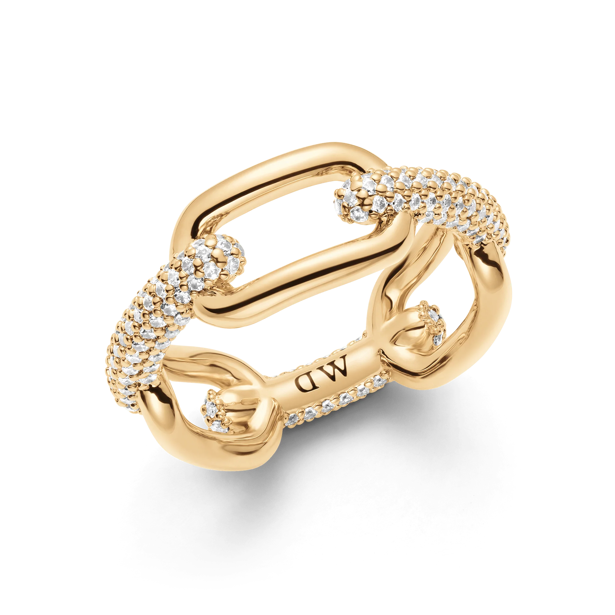 A mix of industrial elements and refined crystal details take this gold link ring way beyond your basic chain. Wear it with the rest of the Crystal Link collection or alone as a statement piece—this chunky ring is a stunner either way.